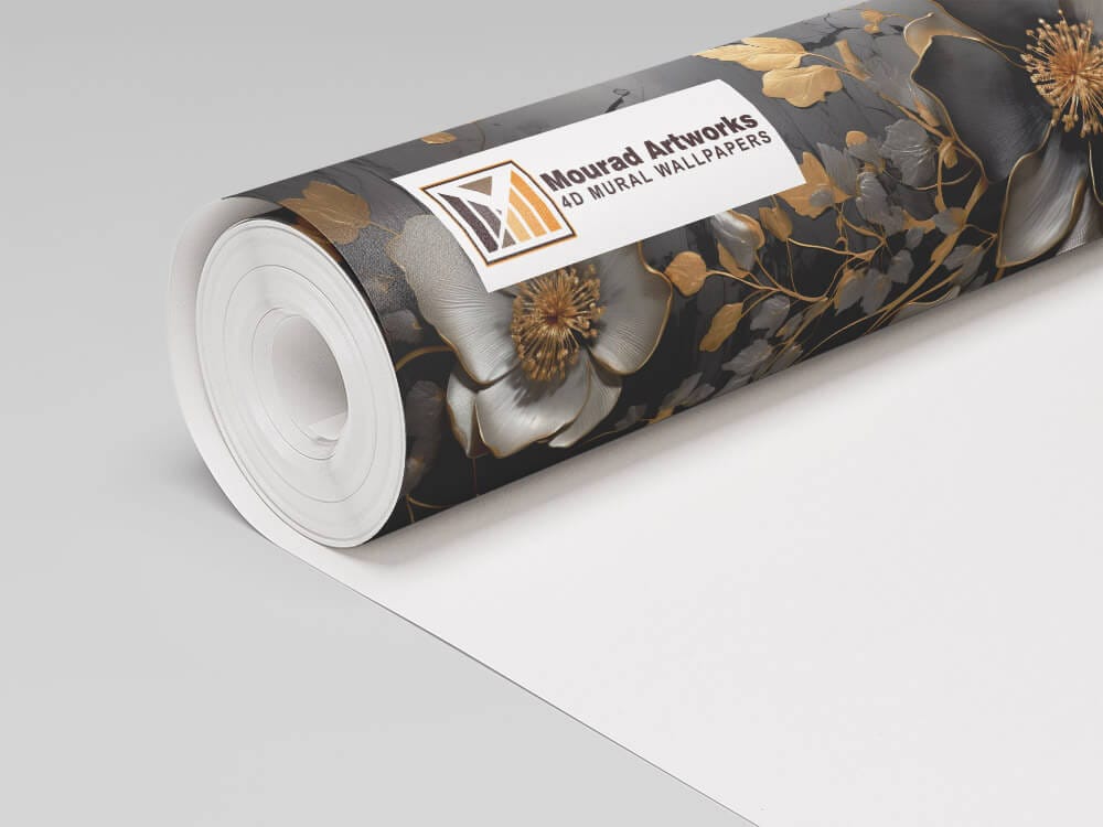 The Noir Gold Flora 4D Mural Wallpaper, a distinguished design by Mourad Artworks, captures the essence of night-time elegance. This mural features a striking juxtaposition of deep, dark backdrops with shimmering gold floral elements, creating a breathtaking visual experience that's both bold and sophisticated.