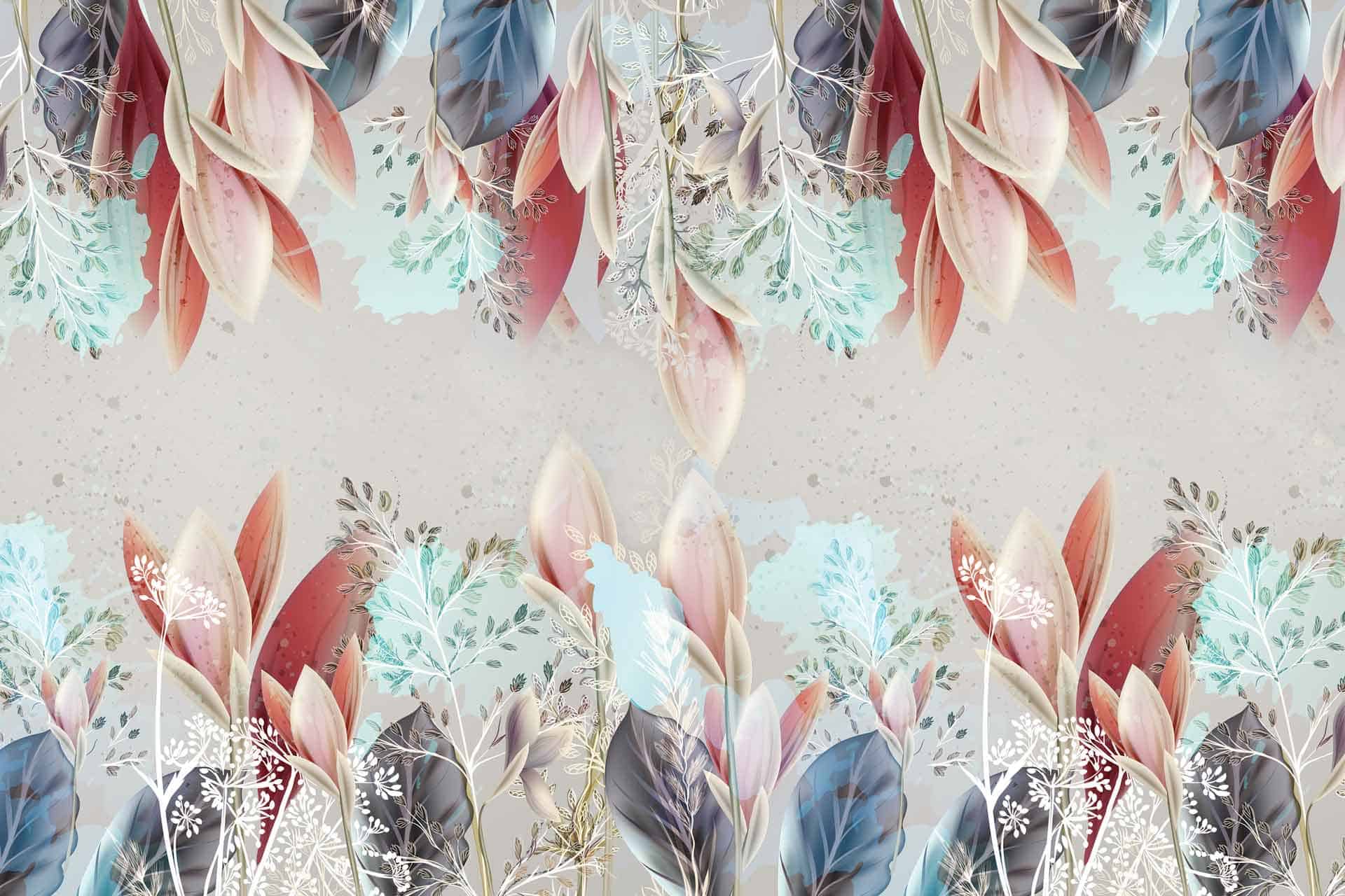Mourad Artworks proudly presents the Floral background in pastel colors and spring plants 4D Mural Wallpaper, a design where tranquility meets luxury professional setting.