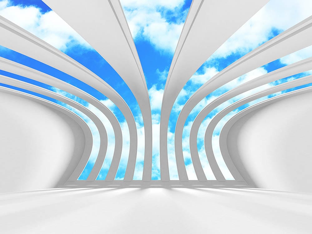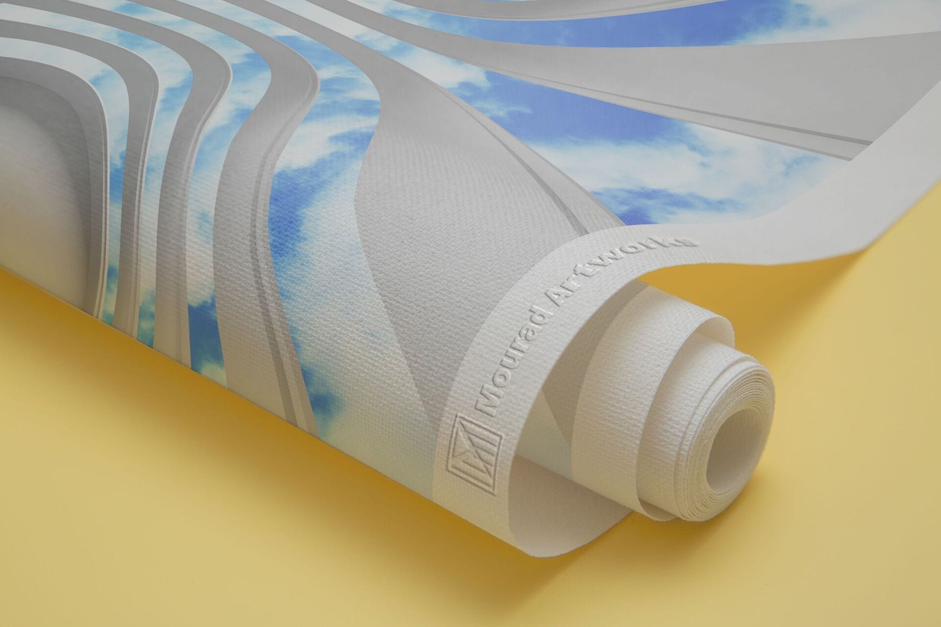 Experience the illusion of infinite space with our breathtaking Skyline Arch 4D Mural Wallpaper. This design features a stunning architectural archway that opens up to a serene blue sky filled with fluffy white clouds. The perspective creates a captivating 4D effect, making it feel like you can step right through the wall and into the vast expanse beyond.