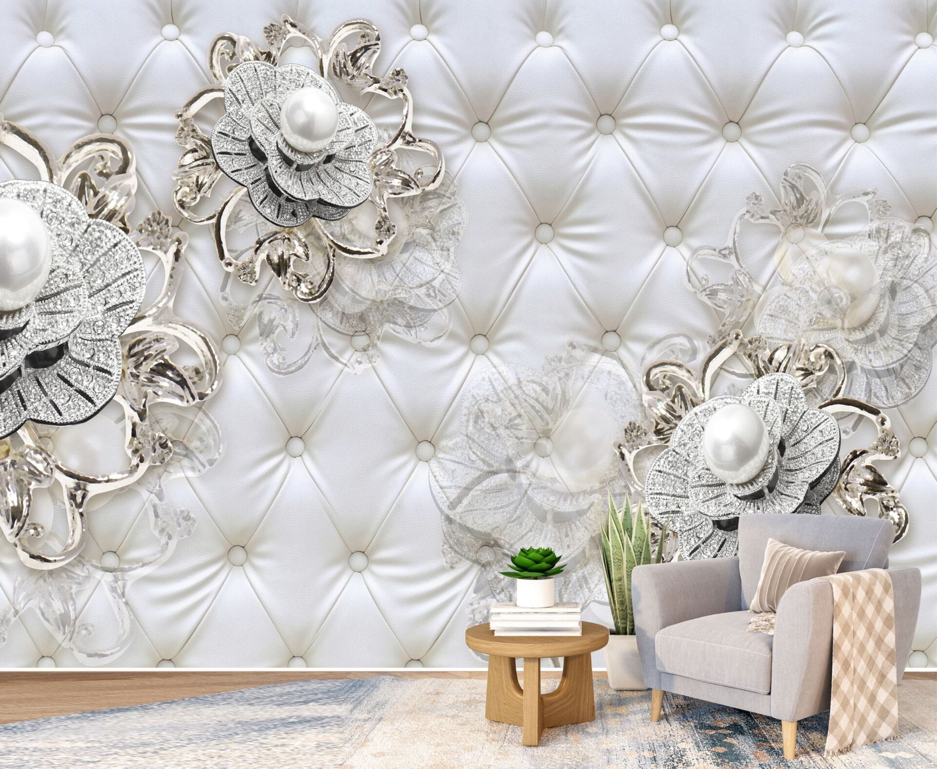 The 3D pearl Jewellery 4D Mural Wallpaper from Mourad Artworks is a modern and luxurious design element to any space, this wallpaper adds a touch of glamour and modernity to traditional and contemporary interiors alike.