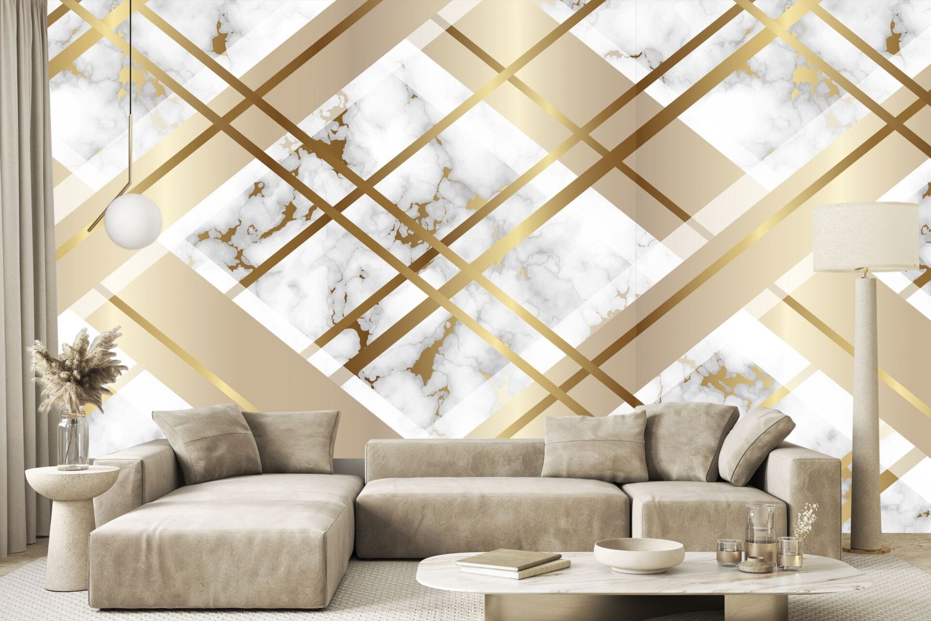 The combination of muted backgrounds with metallic highlights provides a versatile aesthetic that complements a variety of decor styles.