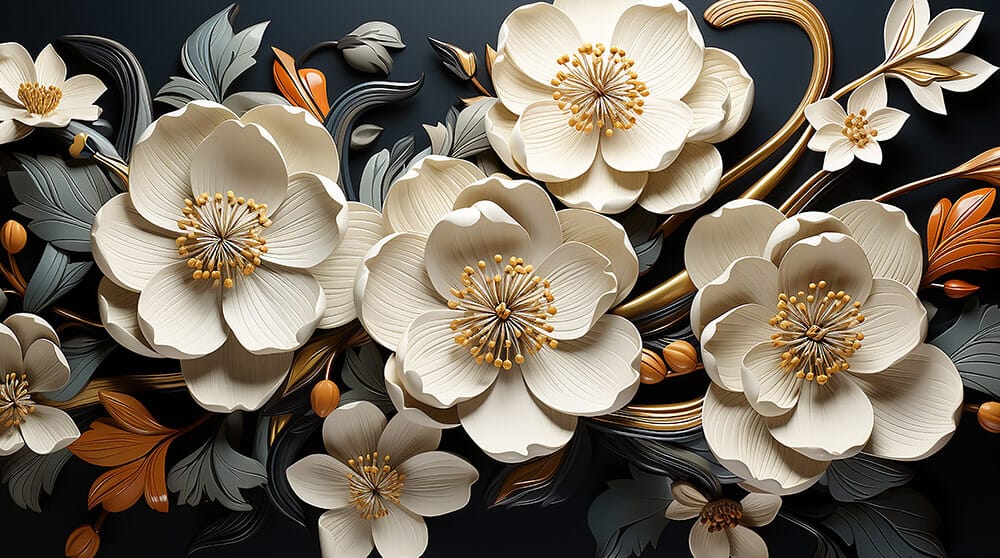 The Midnight Floral Elegance 4D Mural Wallpaper is Mourad Artworks' tribute to the enchanting allure of the night garden. This wallpaper radiates sophistication with its rich, dark backdrop and contrasting blooms, adorned with subtle golden touches that mimic the moonlit glow. The intricate floral design invites a luxurious ambiance into any room, making it a fitting centerpiece for both modern homes and high-end commercial settings.